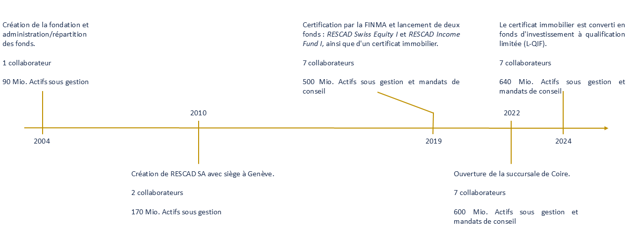 L’histoire de RESCAD commence en 2004. Gian Heim, qui avait déjà travaillé plusieurs années dans la gestion institutionnelle de ROLEX Holding et des fonds de pension ROLEX, s’est vu confier la création puis l’administration de deux fondations caritatives. Dès lors, la gestion administrative et organisationnelle des institutions à but non lucratif faisait partie de son domaine de responsabilité. Ces nombreuses années d’expérience font aujourd’hui de RESCAD un partenaire de confiance dans la gestion de fortune institutionnelle, la gestion des caisses de pension, la philanthropie et les services de family office.